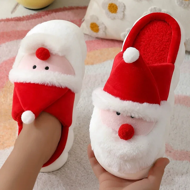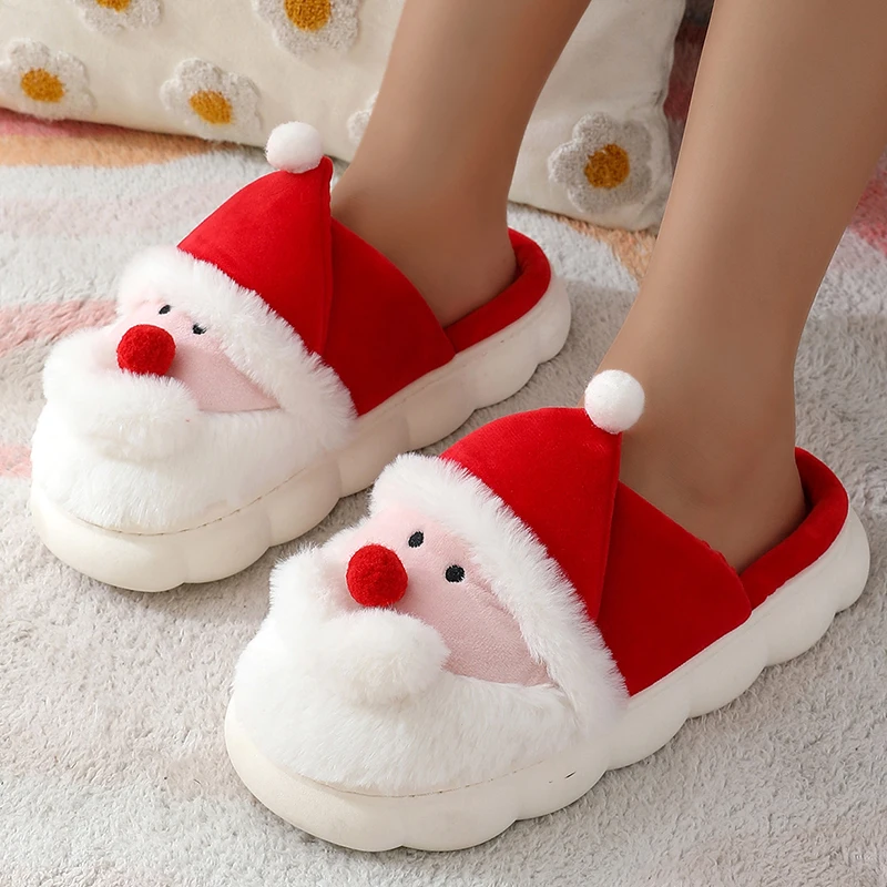 Cartoon Santa Claus Fur Slippers Women Christmas Style Non Slip Home Cotton Slippers Woman Indoor Soft Sole Cotton Slides Ladies